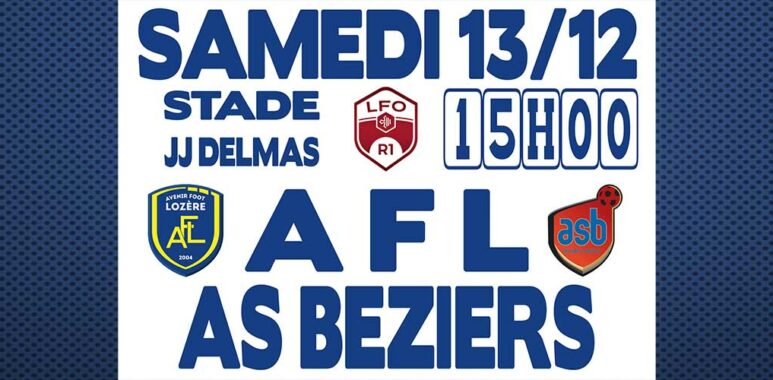 Séniors Championnat R1 : AFL – AS BEZIERS Samedi 13/12/25 8 décembre 20256 Dernière rencontre à domicile de l’année 2025 pour notre équipe séniors R1 qui va recevoir l’AS BÉZIERS. SAMEDI 13 DÉCEMBRE 2025 à 15H au STADE JEAN-JACQUES DELMAS ON COMPTE SUR VOTRE PRÉSENCE POUR LES SOUTENIR !!!