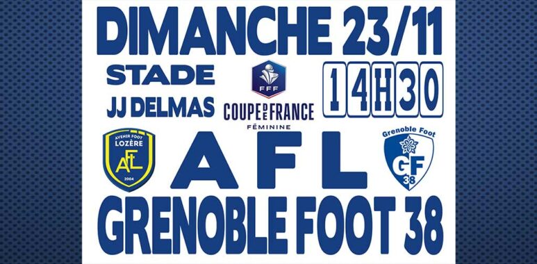 Ce DIMANCHE 23 NOVEMBRE 2025 à 14H30 au Stade Jean-Jacques Delmas, l’AVENIR FOOT LOZÈRE va recevoir l’équipe de GRENOBLE FOOT 38.