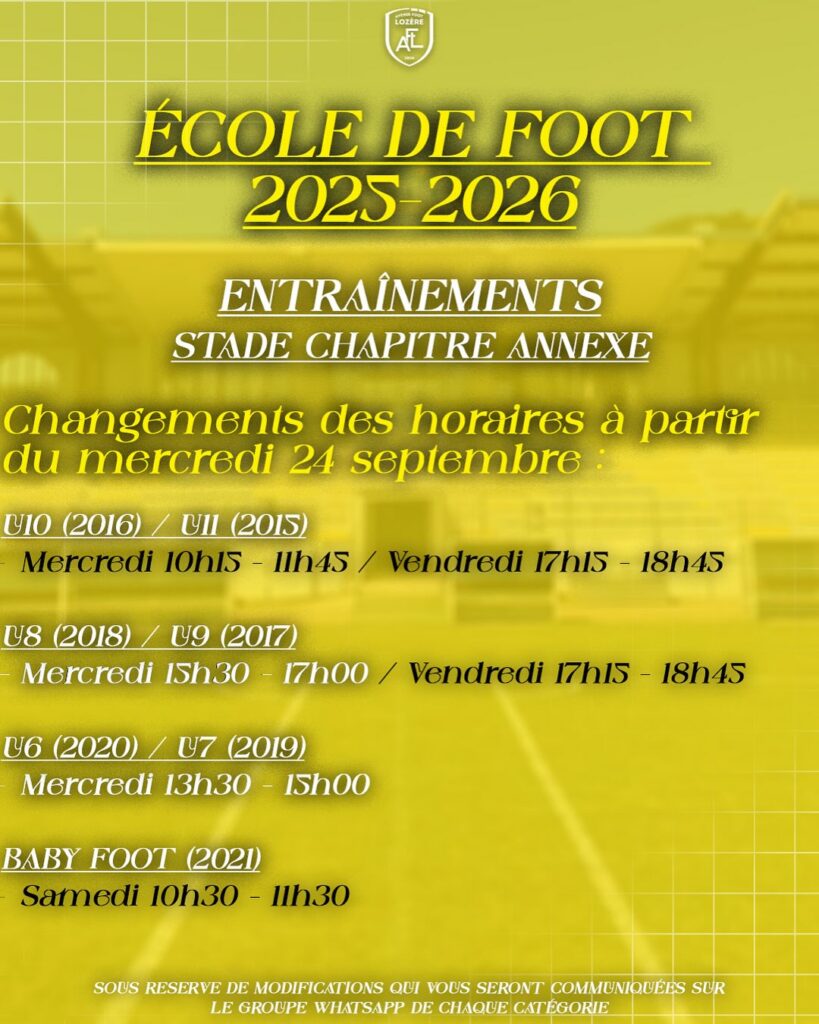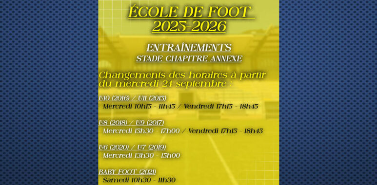Horaires des entrainements de l’école de foot