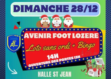 GRAND LOTO DE NOËL L’Avenir Foot Lozère vous donne rendez-vous pour un après-midi exceptionnel placé sous le signe du jeu, du partage et de la fête Dimanche 28...